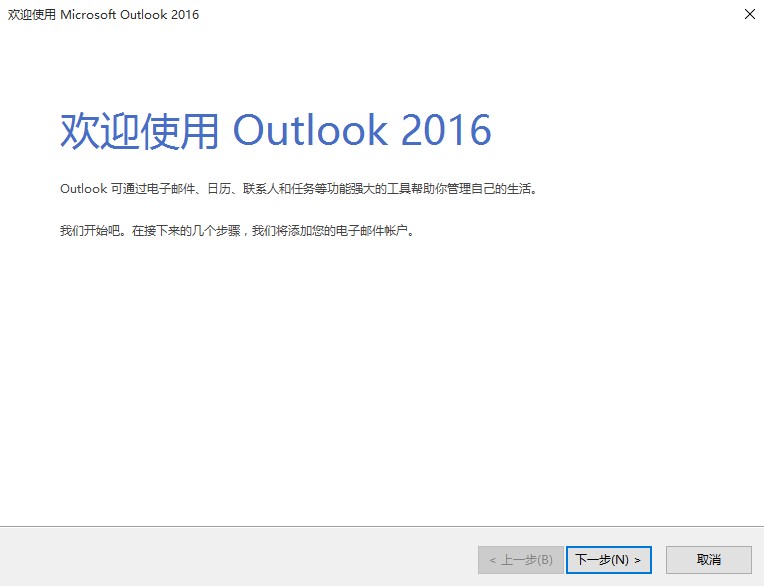 点击Outlook2016图标进入,直至“添加账户”界面,过程依次如图。