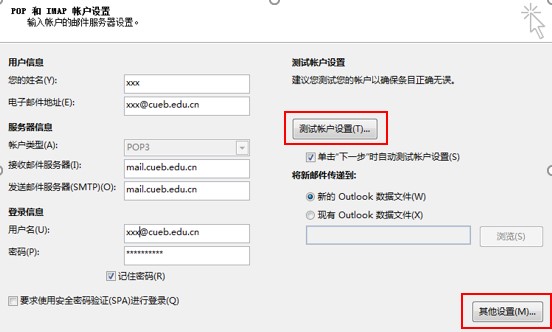 电子邮件地址为需要设置的邮箱地址,用户名和密码为设置的邮箱用户名和密码。