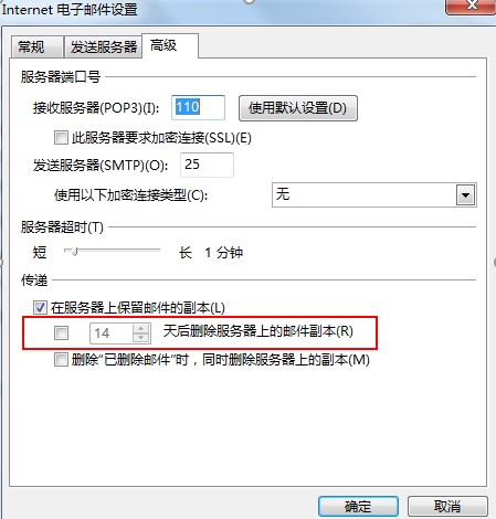 温馨提示:请将默认“14天后删除服务器上的邮件副本”选项勾掉,否则会删除服务器端邮件。