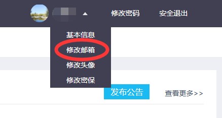 ①设置邮箱:右上角,点击个人名字旁边的小三角,点击“修改邮箱”,直接在“新邮箱”处键入密码找回的邮箱即可。