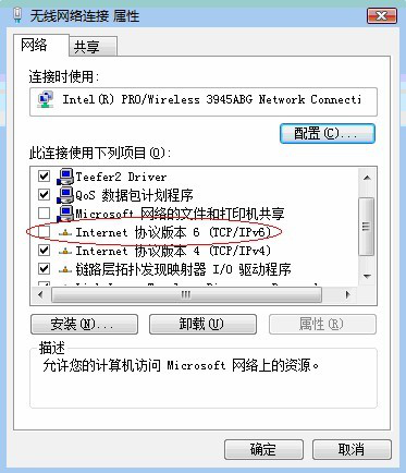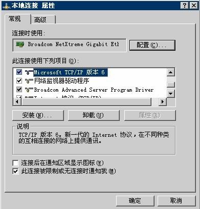 成功安装IPv6协议后本地连接的属性如图5所示。