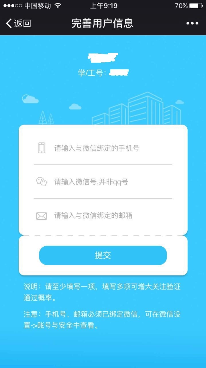 最后,按要求输入微信已经认证过的手机号码、微信号或者邮箱(三选一即可)。